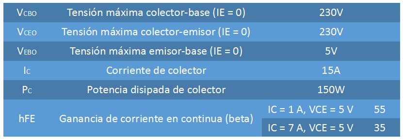 Este documento lo proporciona el fabricante del transistor (por lo tanto, para los modelos usuales de transistores, manufacturados por varios fabricantes diferentes, podemos encontrar distintas hojas de datos, si bien los valores que indicarán serán muy similares, si no idénticos).
