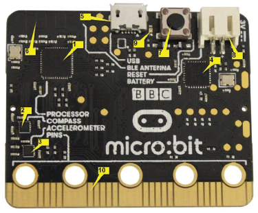 - Botón RESET: le permite restablecer el micro: bit y reiniciar el programa que se está ejecutando actualmente o poner el micro: bit en modo de mantenimiento.