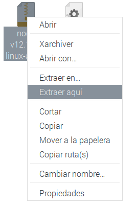 4.- Ya teniendo instalado los paquetes de node.js solamente daremos clic derecho sobre el mismo para extraer los archivos en la ubicación donde se descargo