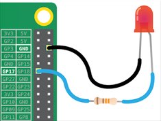 Donde led es una variable que almacenará básicamente el pin que elijamos que en mi caso fue el GPIO17 para la conexión del ánodo (+) del LED y cualquier GND para el cátodo (-) como vemos en la siguiente figura .