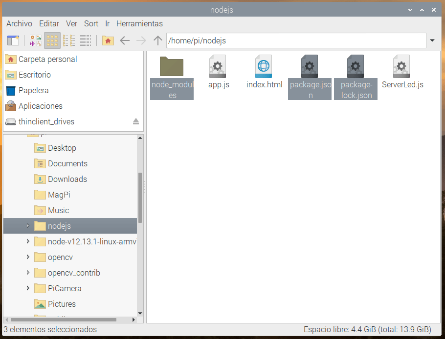 También veamos que en nuestra carpeta se han creado 2 archivos json y una carpeta que contendrá todos los módulos que estemos instalando en nuestros proyectos por ejemplo esta carpeta tendrá el modulo de pigpio, por lo que no debemos de borrarlos ya que esto podría provocar errores en nuestra aplicación.