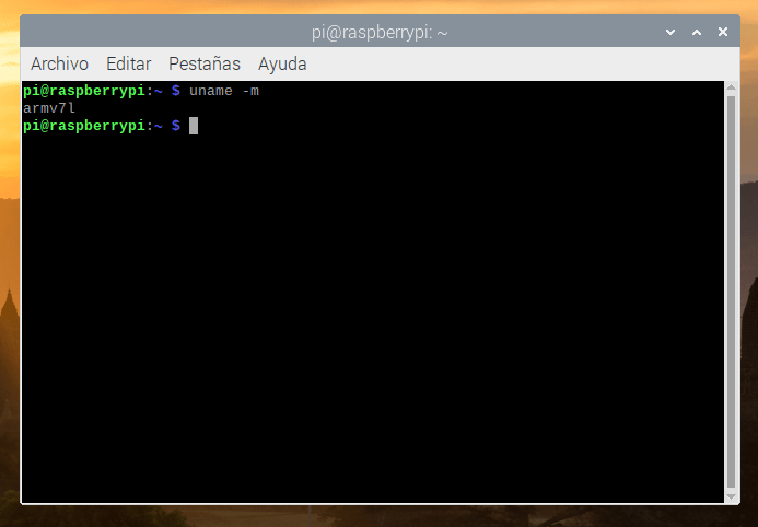 1.- El procesador en Raspberry Pi es de arquitectura ARM, pero dependiendo del modelo puede ser ARMv7 o ARMv8. Estas 2 versiones de ARM son compatibles con Node.js. Así que para saber cual maneja nuestro mini ordenador abriremos la terminal y escribimos el siguiente comando: