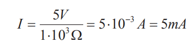 Podríamos decir que las fuentes mas comunes para el giro electrónico son las fuentes de tensión. Si bien para la polarización de componentes activos dentro de un circuito integrado es frecuente el uso de fuentes de intensidad, es muy poco probable encontrarse con una fuente de este tipo en forma de dispositivo en un laboratorio de electrónica. Así nos dedicaremos a mencionar, únicamente, las fuentes de tensión, que como su propio nombre indica, una fuente de tensión ha de ser capaz de mantener una tensión de salida constante para cualquier valor de la carga que esté alimentando. Así, en la figura 2, aparece una fuente de 5V proporcionando alimentación a una carga con una resistencia equivalente de 1 KΩ, es decir que la fuente estará generando una intensidad de corriente eléctrica de: