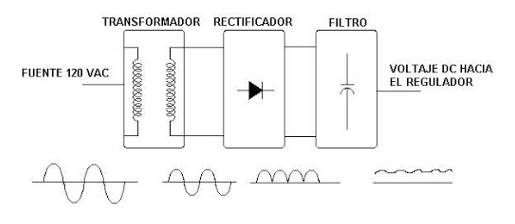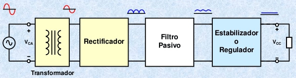 Fig 3. Etapas de una fuente de alimentación lineal.
