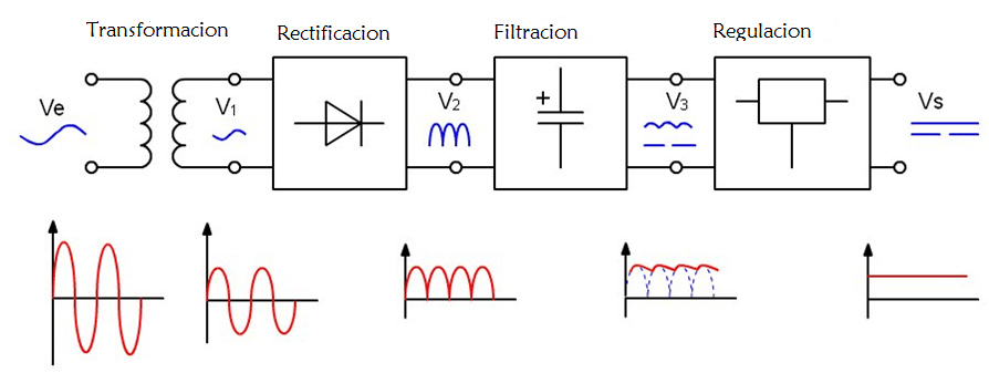 Etapas de una fuente de alimentación lineal