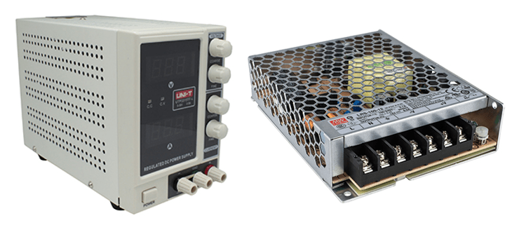 En la figura 1, podemos ver las fuentes mas comunes, del lado izquierdo se presenta una fuente lineal mientras que del lado derecho vemos a una fuente conmutada, de las cuales estaremos hablando más adelante.
