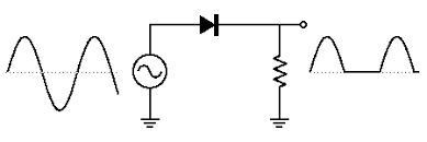 2. Rectificación: La etapa de transformación cambia la amplitud de la señal alterna de entrada, pero esa señal sigue siendo alterna. Las fuentes de alimentación lineales deben proporcionar a los circuitos electrónicos corriente continua, por lo que es necesario algún tipo de dispositivo capaz de realizar esa conversión. A ese dispositivo se le denomina rectificador. Existen muchas clases de rectificadores que veremos a continuación , aunque todos ellos se basan en diodos (ya sean diodos semiconductores, diodos de vacío, válvulas gaseosas, etc.) Parece lógico que así sea, puesto que el diodo es un componente que permite el paso de la corriente en un único sentido, lo cual lo hace ideal para transformar corriente alterna (que circula en ambos sentidos) en corriente continua (que lo hace únicamente en uno).
